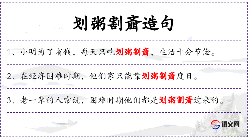 - 为了节约开支,小明每天的饮食都非常简单,只吃划粥割齑。