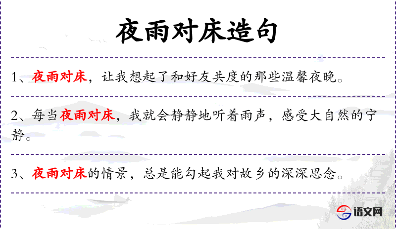 句子:“夜雨对床,让我想起了那些和家人共度的温馨时光。”