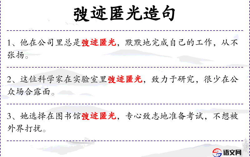 - 韬迹匿光:这个成语源自**传统文化,强调谦虚和内敛的美德。
