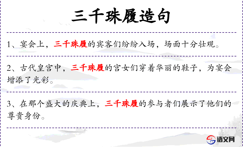 - 三千珠履:这个表达可能源自古代**对贵族服饰的描述,强调了宾客的尊贵和奢华。