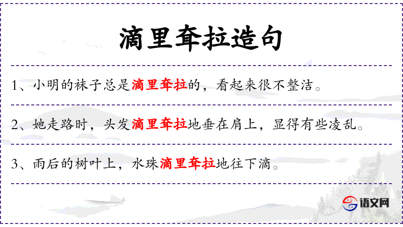 3. 【滴里耷拉】 - 物体下垂的样子。