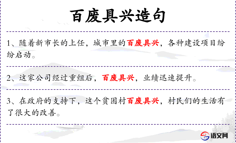 1. 【百废具兴】 - 指一切废置的事都兴办起来。同“百废俱兴”。