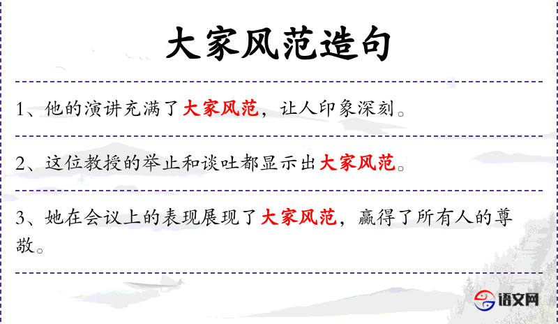 - 文化背景:在**文化中,“大家风范”通常指有教养、有品位的气质,常用于赞扬人的行为或表现。