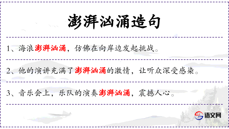 5. 【澎湃汹涌】 - 澎湃:大浪互相撞击;汹涌:波涛猛烈地向上涌。形容声势浩大。