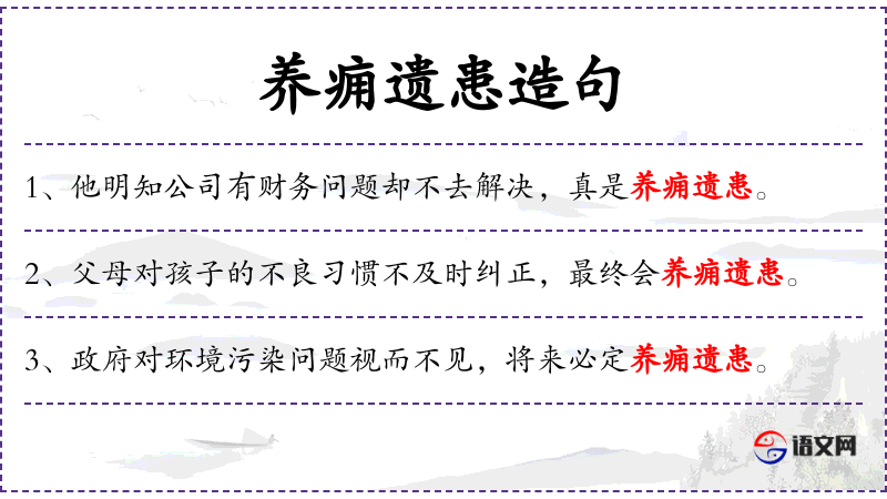 - 养痈遗患:这是一个成语,意思是放任小问题不管,最终会导致大问题。