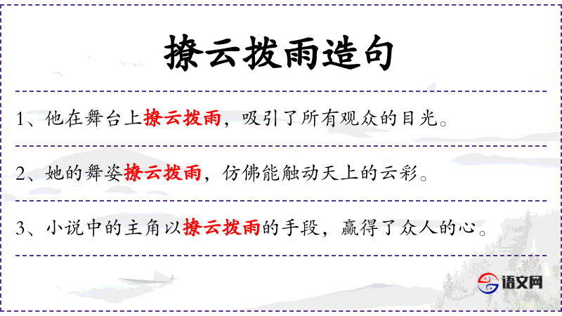 “撩云拨雨”是一个汉语成语,源自古代文学作品,形容技艺高超,能够轻松应对各种困难。这个成语体现了汉语中丰富的比喻和形象表达。