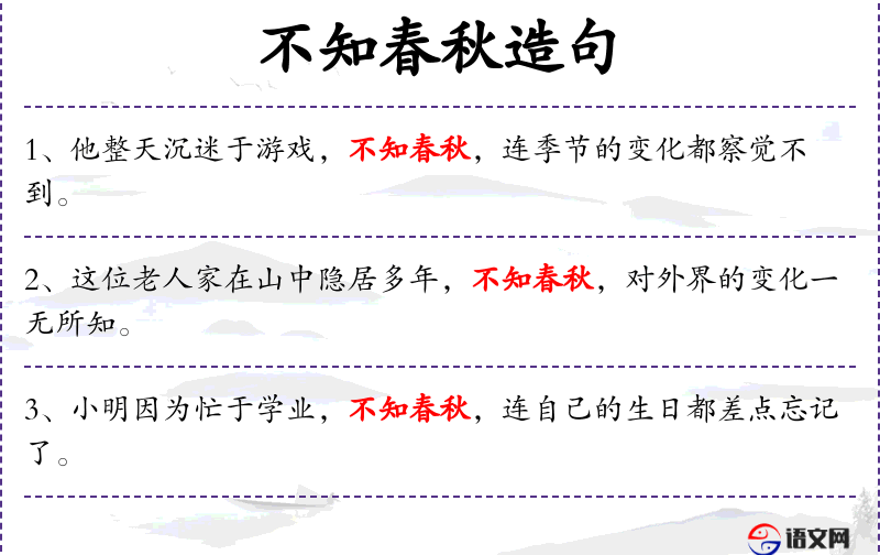 - 句子中的“不知春秋”可能源自**古代的“春秋”概念,即时间的流逝。这反映了传统文化中对时间的感知和态度。