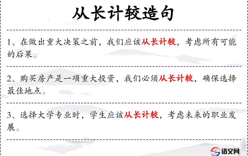 - 从长计较:这个成语体现了**文化中重视长远规划和稳定发展的价值观。