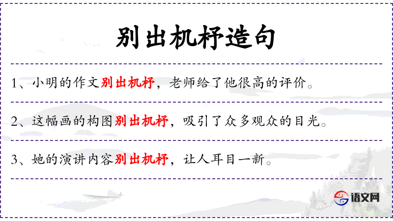 - “别出机杼”:成语,意为与众不同,有独创性。