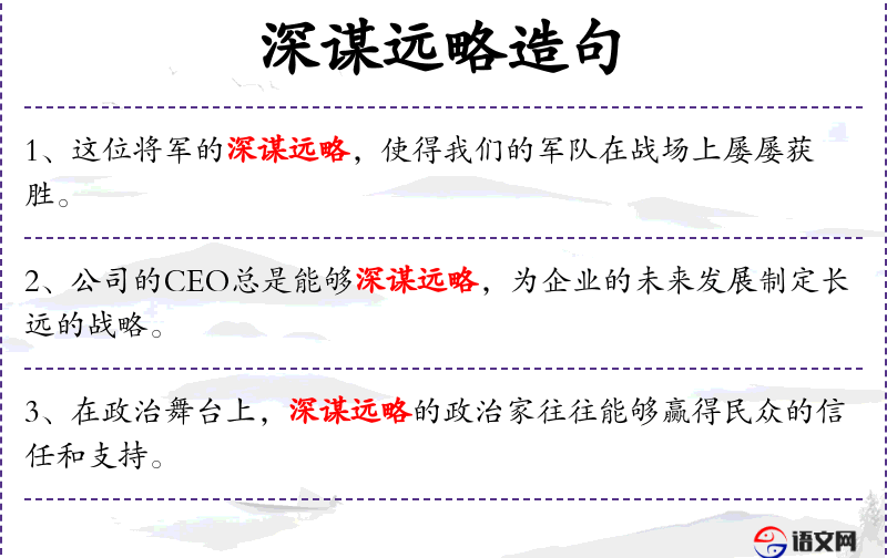 7. 【深谋远略】 指计划得很周密,考虑得很长远。