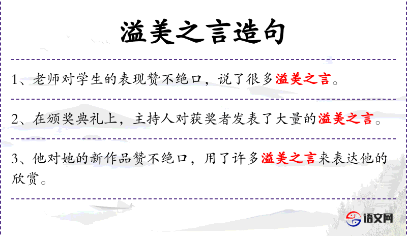 1. 【溢美之言】 - 过分夸奖的话。