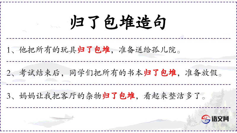 - 归了包堆:成语,意思是整理好,归类好。