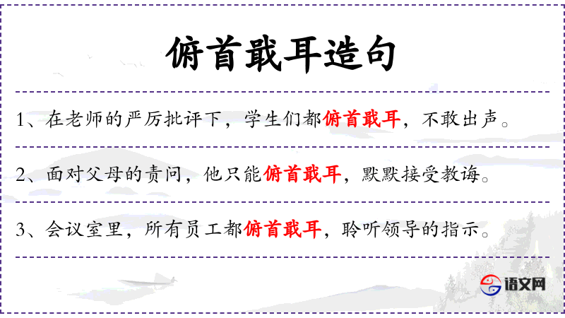 - 谓语:俯首戢耳,等待