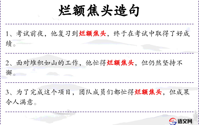 3. 【烂额焦头】 - 形容十分狼狈窘迫的样子。