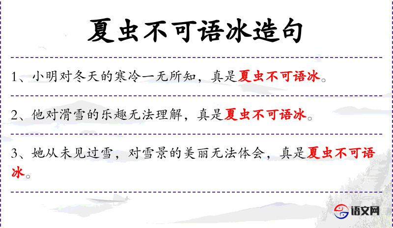 句子:“他从未在雪地中行走,对那种感觉真是夏虫不可语冰。”