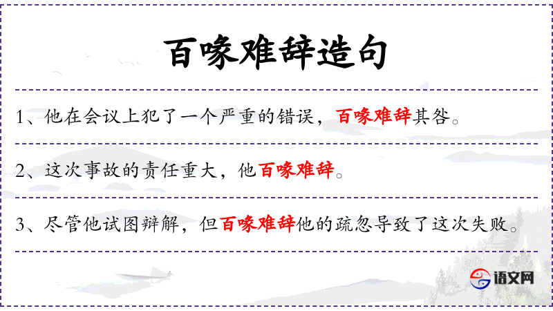 2. 【百喙难辞】 - 喙:嘴,借指人的嘴。指纵有众多百口也很难解释。