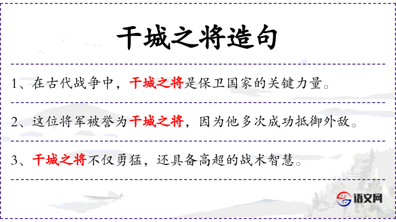 - 干城之将:指重要的将领或保卫国家的重要人物。