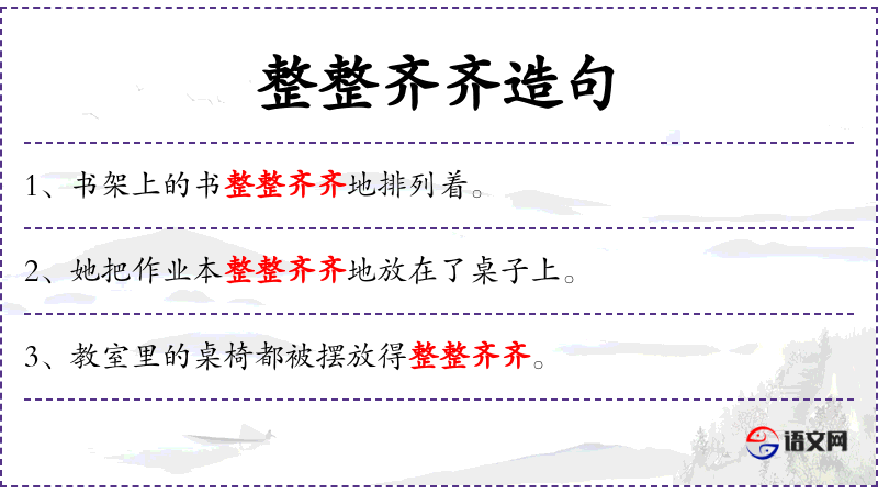 - 状语:整整齐齐