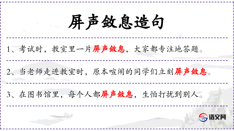 - 谓语:屏声敛息,全神贯注