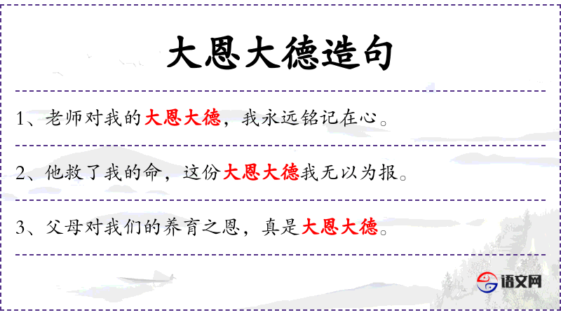 - “大恩大德”这个成语强调了恩情的深厚和德行的高尚。