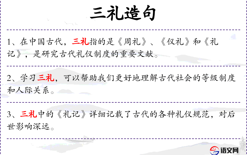 古祭天﹑地﹑宗庙之礼; 儒家经典《周礼》﹑《仪礼》﹑《礼记》的合称; 指丧礼﹑葬礼﹑祭礼。