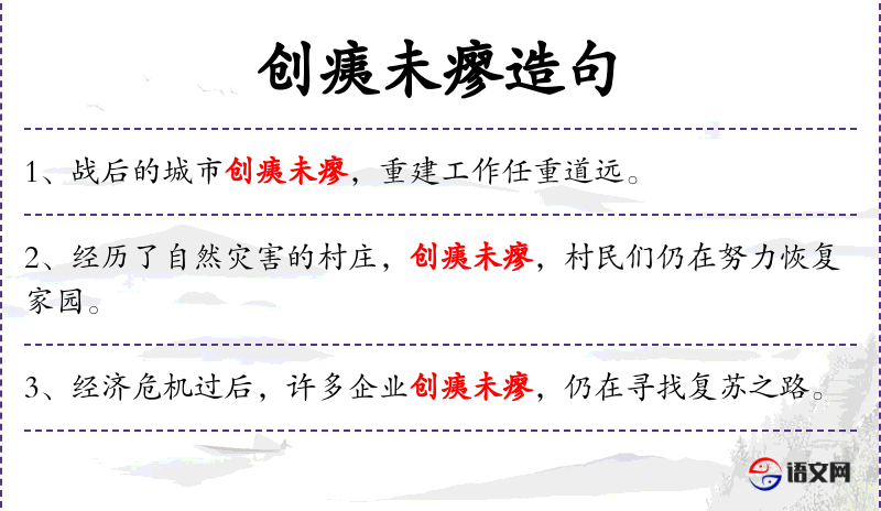 句子中的“创痍未瘳”是一个成语,源自古代汉语,形容创伤严重,尚未痊愈。这个成语的使用增加了句子的文化深度,反映了中华文化对历史创伤的深刻记忆和反思。