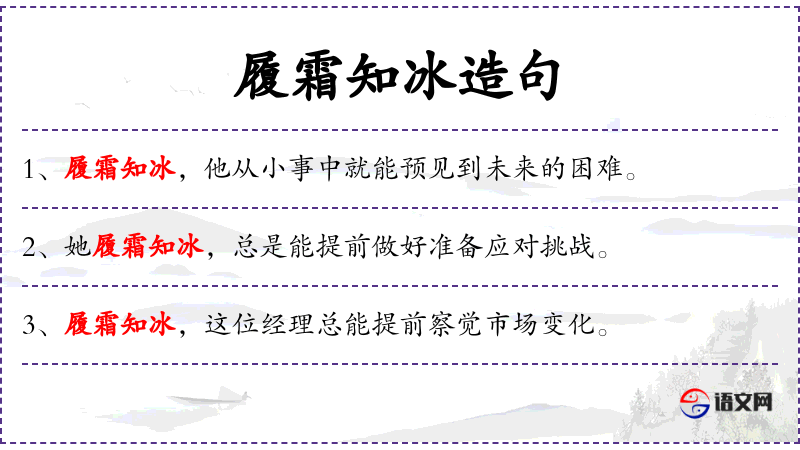 - 文化背景:成语“履霜知冰”体现了**文化中对预见性和谨慎的重视。