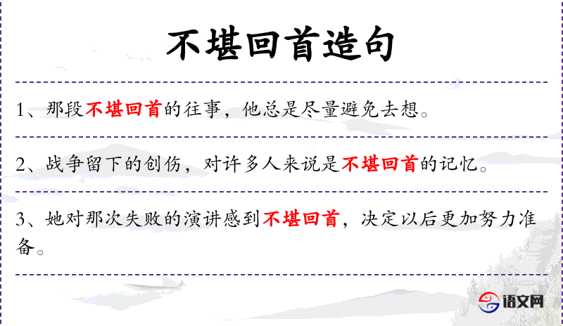 - 不堪回首:成语,表示不愿意回忆或回想。
