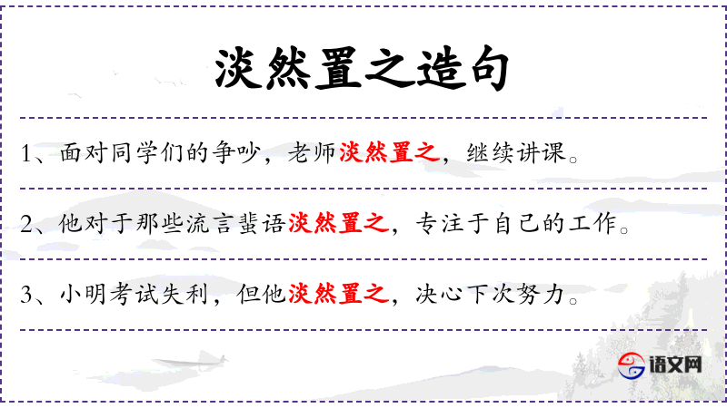 5. 【淡然置之】 - 很冷淡地放在一旁。形容毫不在意。
