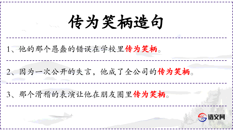 - 网络上的:介词短语,表示在网络这个虚拟空间中。 *. 传为笑柄:名词短语,指被广泛传播并被当作笑料的事物。