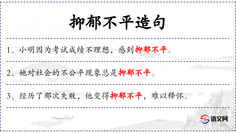 - 谓语:总是抑郁不平