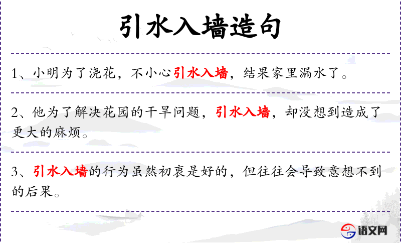 - 谓语:引水入墙