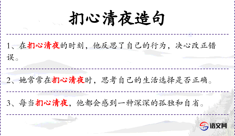 - 状语:“在扪心清夜的宁静中”