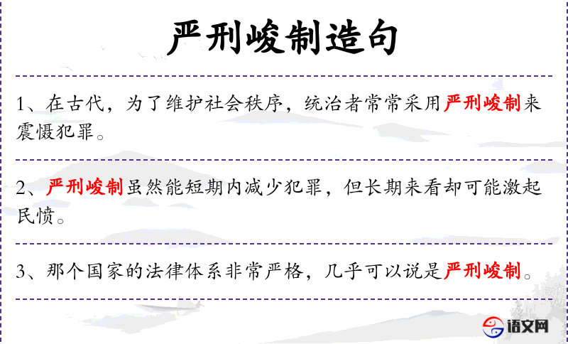 - 严刑峻制:指严厉的刑罚和严格的法律制度。