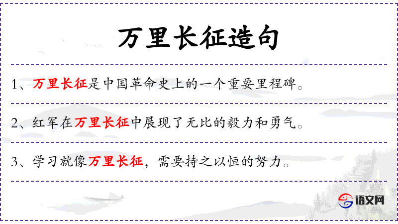 - 万里长征:这个成语来源于**历史上的红军长征,是一个具有深厚文化意义的典故,象征着坚韧不拔和克服困难的精神。