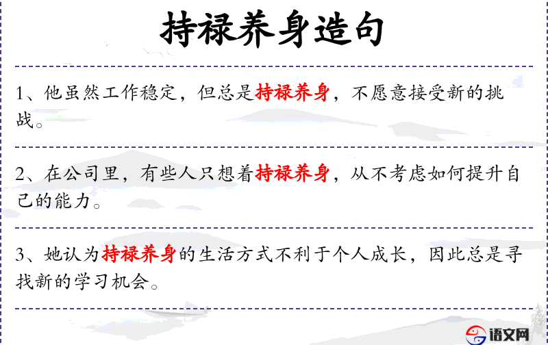 - “持禄养身”是一个**成语,反映了一种保守的生活态度。