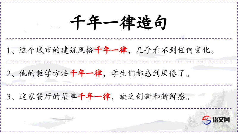 - 千年一律:形容长时间没有变化,缺乏新意。