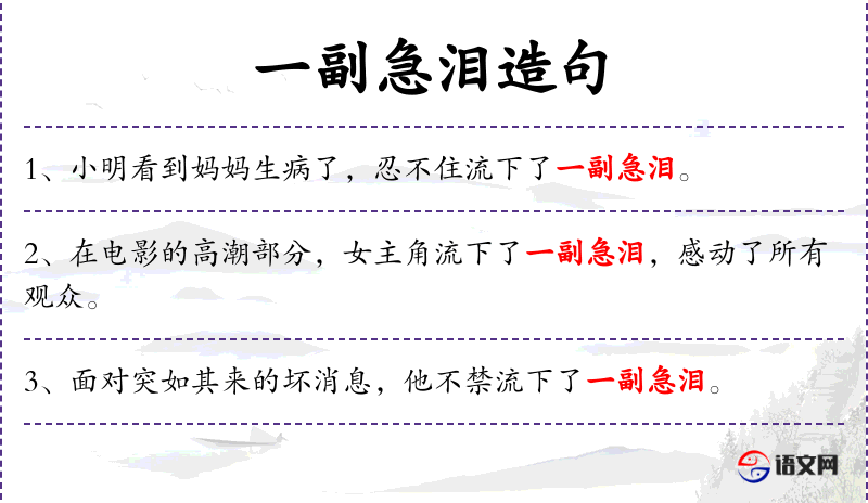1. 【一副急泪】 - 指为了对付应急需要而骤然挤出来的一串眼泪。