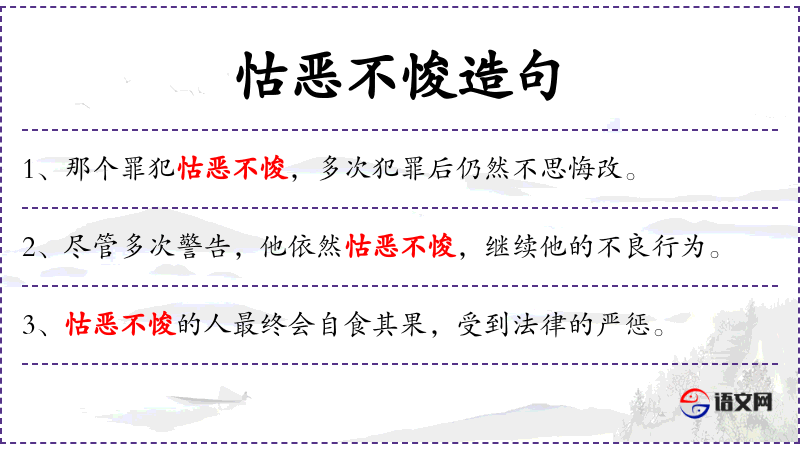 - 主语:她的怙恶不悛