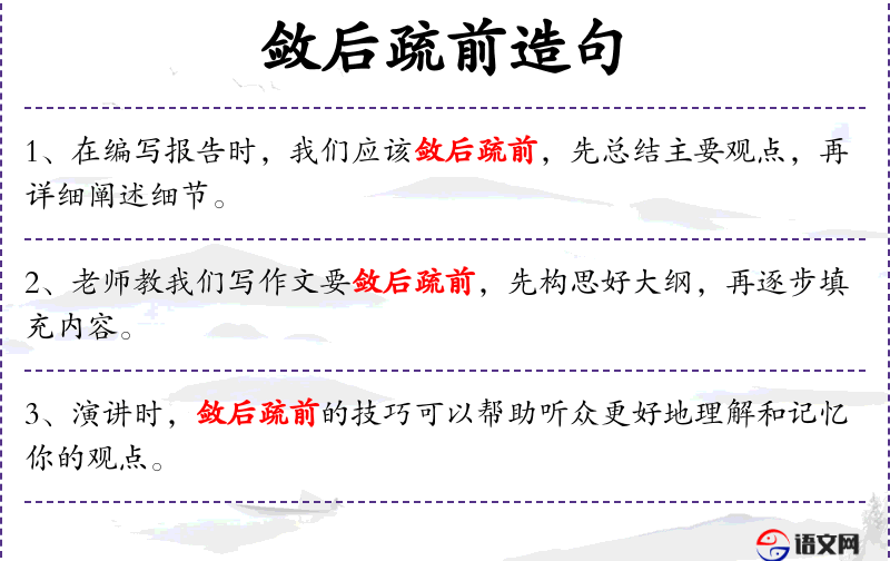 “敛后疏前”这一表达可能源自古代的写作理念,强调先确定主要内容,再进行细节补充。这种写作方法在传统文化中被认为是一种高效且有序的写作策略。