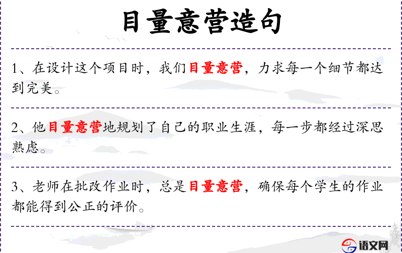 4. 【目量意营】 以目测量,用心经营。形容精心勘测设计。