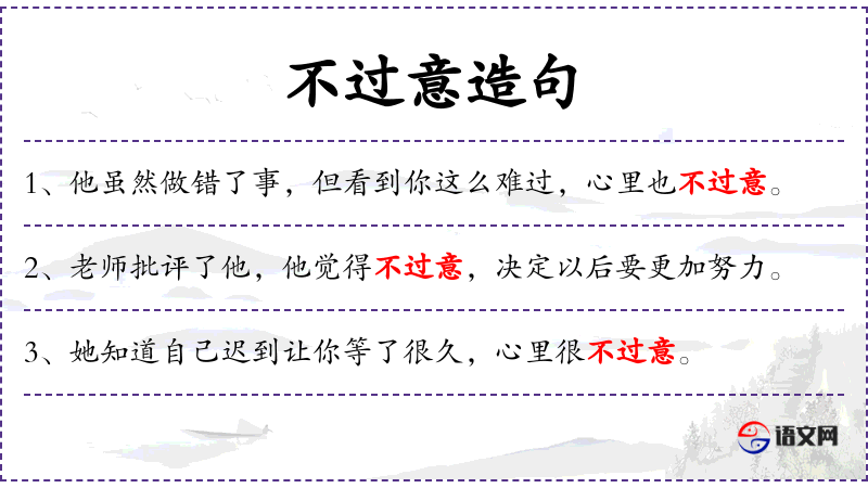 1. 【不过意】 - 过意不去:总来打扰您,心里实在~。