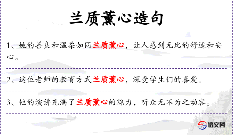 - 兰质:在**文化中,兰花象征高洁、典雅,常用来比喻人的品质。