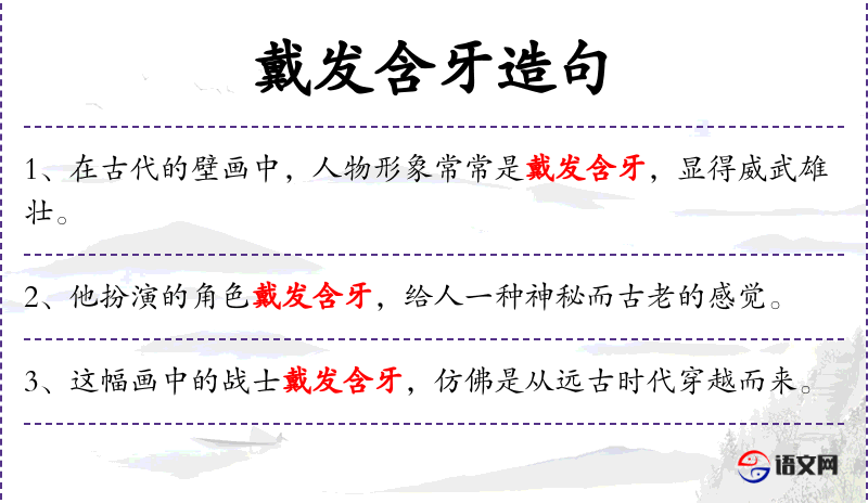 - 定语:戴发含牙