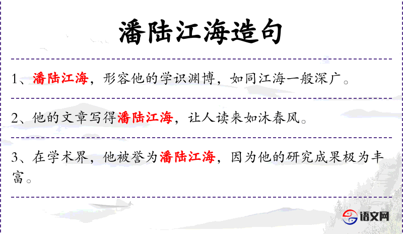 3. 【潘陆江海】 - 陆:晋代诗人陆机;潘:晋代诗人潘岳。比喻有文才的人。