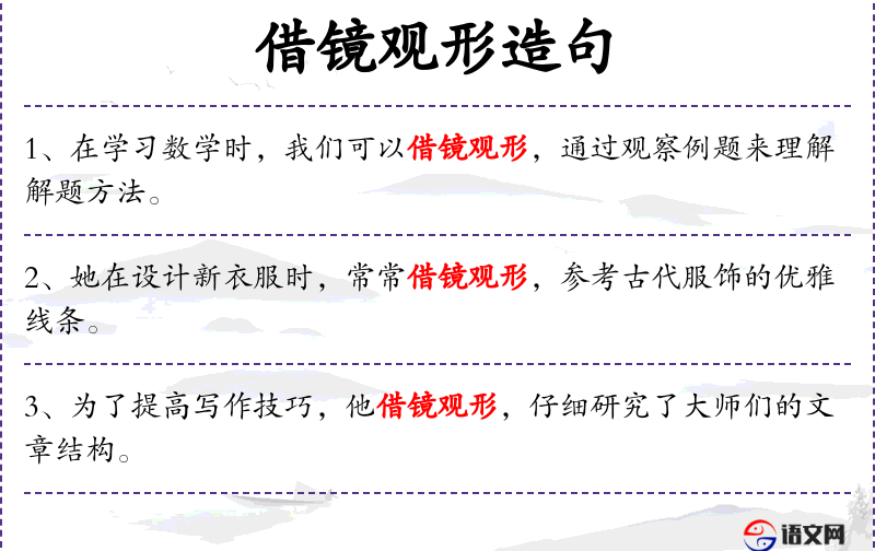 - 宾语:借镜观形,通过研究历史文献来获取深入见解