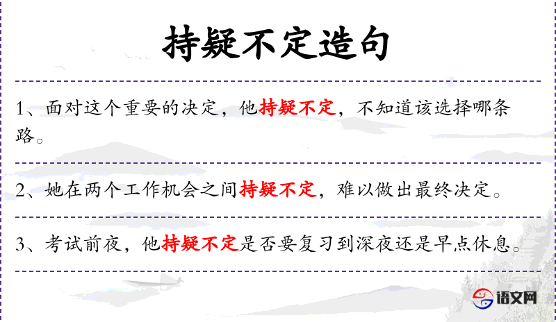 - 持疑不定:表示犹豫不决,不确定是否采取行动。