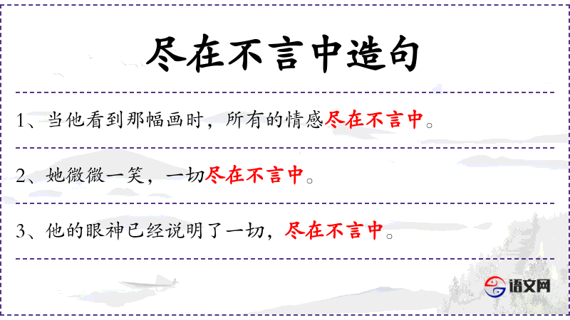 - 尽在不言中:成语,意思是所有的意思都在不言之中表达出来,强调非言语的沟通方式。