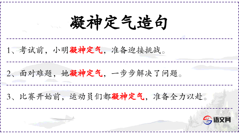 - 谓语:凝神定气,准备