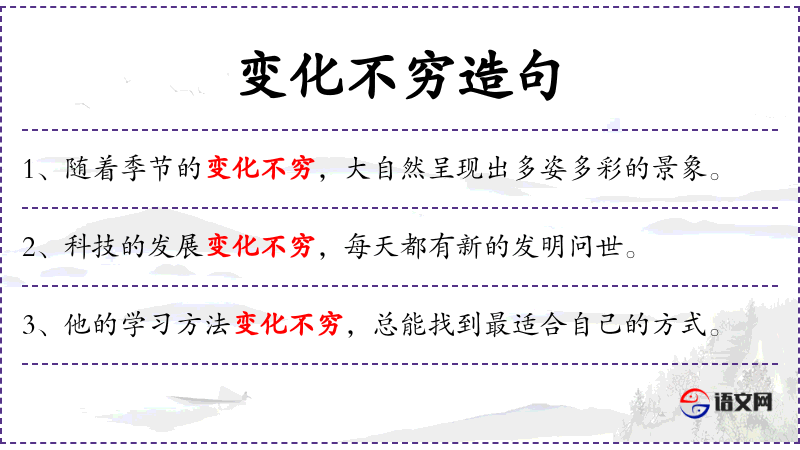 - endlessly varied (英) / 絶えず変化 (日) / unendlich vielfältig (德):表示变化多样,没有尽头。
